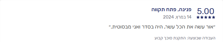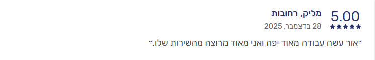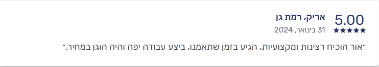 ״אור הגיע בזמן, נתן לי שירות מקצועי, סידר כל מה שצריך ויצא גגון יפה מאוד. אני מאוד מרוצה מימנו ומהשירות שלו וממליץ עליו מאוד!״