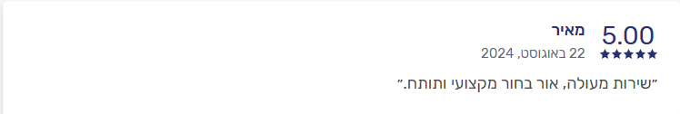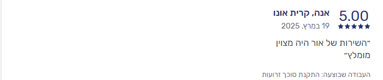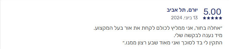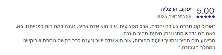 ״שירות מעולה, אור בחור מקצועי ותותח.״