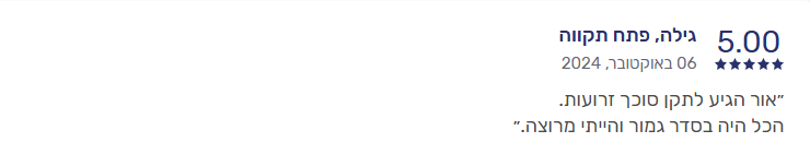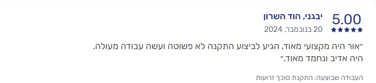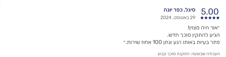 ״אור היה מצוין! הגיע להתקין סוכך חדש. פתר בעיות באותו רגע ונתן 100 אחוז שירות.״